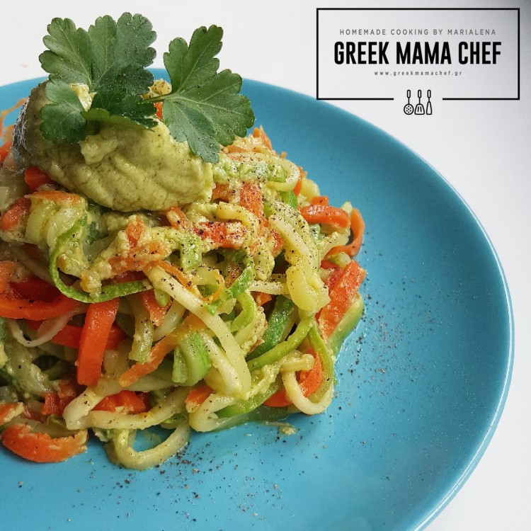Συνταγή: Ζούντλ – Λαχανικά σε σπιράλ με σάλτσα αβοκάντο