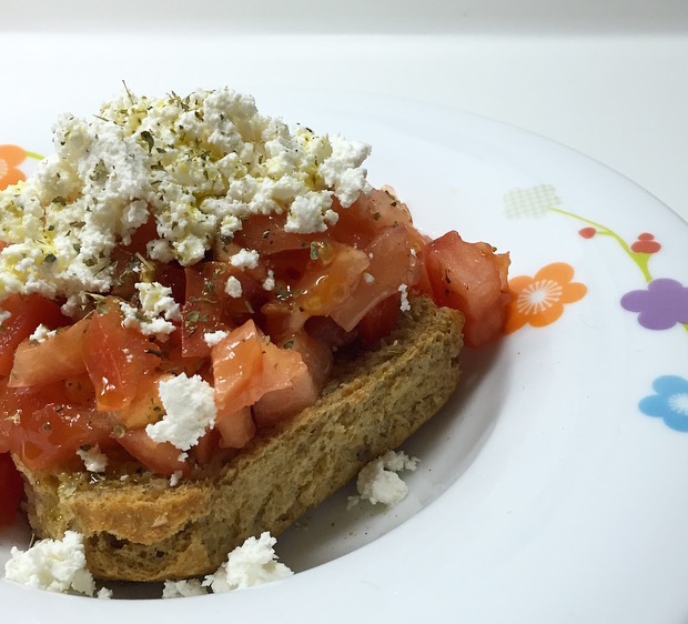 - Ελαιόλαδο – αλάτι – ρίγανη – ντομάτα. Κάντε το 2 φορές και για να τελειοποιήσετε το πιάτο σας, τρίψτε απο πάνω την φέτα, βάλτε λίγη ρίγανη και είστε έτοιμοι! Είναι τόσο εύκολο και νόστημο πιάτο και αρκετά χορταστικό! Καλή όρεξη!