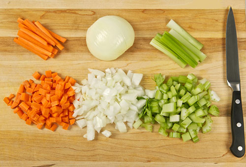“Mirepoix” είναι ένας κλασσικός γαλλικός όρος μαγειρικής, από τον 18ο αίωνα, που αναφέρεται στην χρήση κομμένων κρεμμυδιών, καρότων και σέλερι, κομμένων σε μιρεπουά (αντιστοιχεί και σε κοπή ο όρος), σε αναλογία 2: 1: 1, σωταρισμένα σε βούτυρο ή λάδι, μέχρι να μαλακώσουν και να γλυκάνουν. Στην Ιταλία ο αντίστοιχος όρος είναι “soffrito” or “battuto” ή αλλιώς “holy trinity”. Η αντίστοιχη γαλλική mirepoix έχει επιπλέον λαρντόν και φύλλο δάφνης. Όποια ονομασία και αν τους δώσουν, η αλήθεια είναι πως το τρίδυμο αυτό, αποτελεί την βάση για πάρα πολλά πιάτα, χωρίς καν πολλές φορές να καταλαβαίνεις την παρουσία του. Εάν είναι χοντροκομμένα μπορεί να περαστούν από ψιλή σίτα μπορεί να αποτελέσουν και τους πουρέδες λαχανικών για να δέσει η σάλτσα, αν είναι ψιλοκομμένα μπορεί να αποτελέσουν και μέρος του ίδιου του φαγητού. Γνωστοί Σεφ εξυμνούν την ικανότητα του να προσθέτει ανείπωτο βάθος στην γεύση, οπουδήποτε κι αν προστεθεί, και υπόσχονται πως από την στιγμή που θα το ενσωματώσετε και εσείς στην κουζίνα σας, θα γίνεται και εσείς υπέρμαχος του.Όταν λοιπόν θα αναρωτηθείτε γιατί οι σούπες και οι σως δεν έχουν όγκο, σκεφτείτε πως ίσως ήρθε η ώρα να εντάξετε το υπέροχο αυτό τρίδυμο λαχανικών στην μαγειρική…