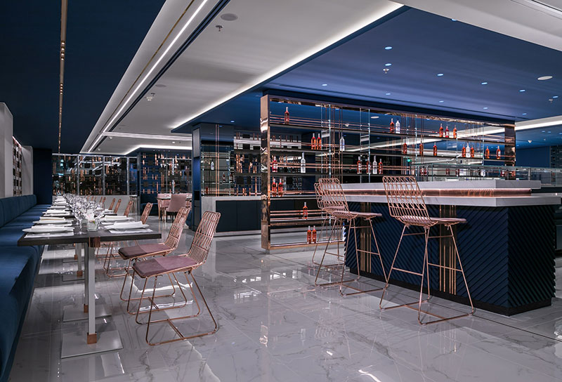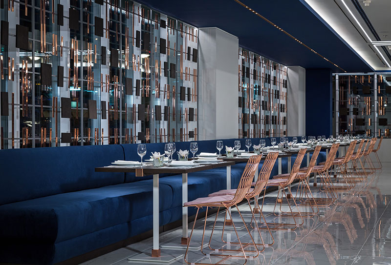 Ο όμιλος Μήτση, η Sofitel και η Elastic Architects εμπιστεύτηκαν τη Furniture Gallery για την εσωτερική ανάπλαση του χώρου, ένα project που ενέπλεξε σύγχρονες τεχνικές, συνδυασμό χαλκού, ξύλου και υφάσματος, για να δημιουργήσει μπουφέδες, γυάλινες προθήκες κρασιών, τραπέζια, σταθερά και κινητά διαχωριστικά, καθρέφτες, καναπέδες, καρέκλες, μαξιλάρια και ιδιαίτερες χάλκινες λεπτομέρειες.