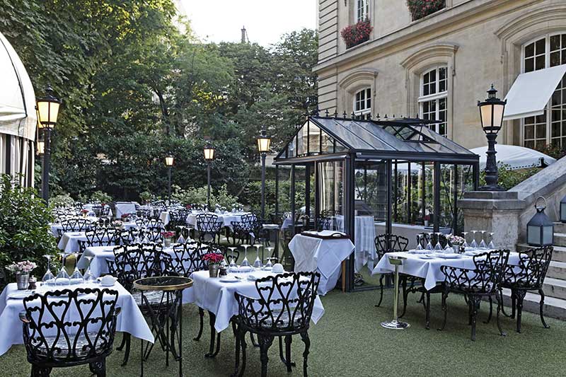 Το εστιατόριο συνδυάζει την κομψή ατμόσφαιρα με τη δημιουργική και εκλεπτυσμένη γαλλική κουζίνα της – βραβευμένης με αστέρι Michelin – Chef, Virginie Basselot.