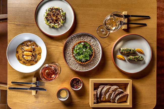 Το μενού περιλαμβάνει πρασοτυρόπιττα, σελινόριζα με κανθαρέλλες και χόρτα φρικασέ, χτένια με κρέμα φασολάδας, Αθηναϊκή με αυγοτάραχο, βοδινή γλώσσα με μαγιονέζα τόνου Αλοννήσου, λαχανοντολμάδες στα κάρβουνα, πατάτες στη θράκα με μαύρη τρούφα και μοσχαρίσιες στηθοπλευρές σε στάχτη, λαυράκι σε νεκρή ζύμη με κρέμα αγκινάρας, μοσχαρίσια μάγουλα με γλυκό τραχανά και Ελληνικό καφέ, μαύρο χοίρο αλλά και αρνάκι ρεβιθάδα με κάπαρη γιαχνί.