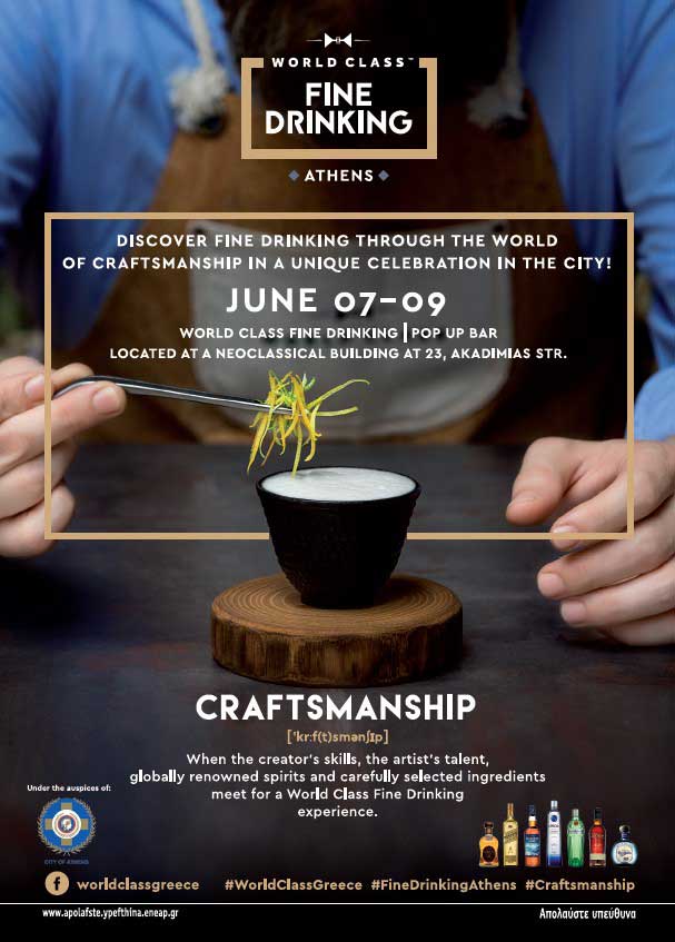 Η ιδιαίτερη αυτή fine drinking περιπλάνηση έρχεται και εξυψώνεται στο κεντρικό pop–up bar του World Class, όπου θα φιλοξενηθούν καταξιωμένοι και ταλαντούχοι Έλληνες και ξένοι bartenders. Την πρώτη ημέρα το bar θα καταλάβουν πέντε Έλληνες World Class νικητές, ο Πάνος Κανατσούλης (2017), ο Αλέξης Σιμωνίδης (2016), ο Μανόλης Λυκιαρδόπουλος (2015), ο Θοδωρής Πύριλλος (2013) και ο Βασίλης Κυρίτσης (2012), οι οποίοι θα μυήσουν τους καλεσμένους στα μυστικά που κρύβονται πίσω από την premium τέχνη του καλού ποτού. Τη δεύτερη μέρα το World Class pop–up bar, φιλοξενεί ένα από τα καλύτερα bar παγκοσμίως (World’s Best 50/rank 4th), το Manhattan Bar Singapore, που μας προσκαλεί σε μια περιήγηση γνώσεων, έμπνευσης και απόλαυσης γεύσεων μέσα από μοναδικά cocktails με βάση τα premium spirits. Την τελευταία ημέρα στο νεοκλασικό κτίριο της Ακαδημίας 23, θα ενωθούν δύο διαφορετικοί κόσμοι, οι οποίοι συμπληρώνονται άριστα. Από τον κόσμο του καλού ποτού δύο παγκόσμιοι World Class νικητές, ο Αριστοτέλης Παπαδόπουλος (World Class Global Winner 2009) και ο David Rios (World Class Global Winner 2013), θα προετοιμάσουν ο καθένας 2 ευφάνταστα και πρωτότυπα serves, τα οποία θα συνοδεύσουν ένα υπέροχο food pairing από τους γνωστούς και Michelin awarded chef, Νίκο Καραθάνο (Cookoovaya) και Αστέριο Κουστούδη (Hotel Grande Bretagne), εξυψώνοντας την συνολική εμπειρία και την απόλαυση όλων των αισθήσεων.