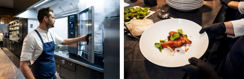 «Ένας φούρνος combi μαγειρεύει με ζεστό αέρα, ατμό ή συνδυασμό και των δύο, επιτρέποντάς του να ψήνει, αρτοποιήματα, στη σχάρα, να μαγειρεύει με ατμό και να κάνει μπρεζέ», εξηγεί ο Μάριος Σαββάτης, Senior Sales Director BD Greece,CY,MLT στην Rational. Η θερμότητα και η υγρασία μπορούν να ελέγχονται μεμονωμένα και με ακρίβεια, δίνοντας στους chefs πλήρη έλεγχο της εργασίας τους και επιτρέποντάς τους να επιτύχουν εξαιρετική ποιότητα, ανεξάρτητα από το πιάτο ή τη μέθοδο παρασκευής. Η παροχή υγρασίας μπορεί να ρυθμιστεί σε βήματα του 10%, ενώ η γεννήτρια φρέσκου ατμού εξασφαλίζει 100% υγιεινό, πλήρως κορεσμένο ατμό, ακόμη και σε χαμηλές θερμοκρασίες. Αυτό διασφαλίζει ότι το φαγητό διατηρεί το έντονο χρώμα του και παραμένει ζουμερό και θρεπτικό. «Από την άλλη πλευρά, υπάρχει η λειτουργία θερμού αέρα με θερμοκρασίες έως και 300°C. Υποστηριζόμενη από ισχυρούς τροχούς ανεμιστήρα, βέλτιστη γεωμετρία θαλάμου μαγειρέματος και γρήγορη αφύγρανση, δημιουργεί τραγανές κρούστες και όμορφα σχέδια σχάρας», εξηγεί ο M. Σαββάτης. «Ο συνδυασμός και των δύο λειτουργιών αποτρέπει τις απώλειες μαγειρέματος και το στέγνωμα, εξασφαλίζοντας συνεπή αποτελέσματα που είναι οπτικά ελκυστικά και έχουν υπέροχη γεύση». Όλα αυτά επιτυγχάνονται με ιδιαίτερα ενεργειακά αποδοτική λειτουργία, όπως επιβεβαιώνεται από την πιστοποίηση ENERGY STAR® για σχεδόν όλα τα μοντέλα.
